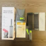 Adjustable thickness: This manual meat slicer for fresh meat comes with 2 blade sets, which can flexibly cut the meat slices into 2 or 4 mm, put the meat slices back into the container and cut them again, get meat strips, meat cubes, and easily enjoy delicious dishes such as hot pot, black pepper beef, salmon sushi. Tips (These blades are not suitable for frozen or bone-in meat)
